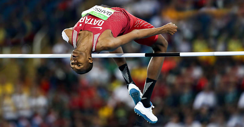 - En el primer salto comienza la carrera y se aproxima con más soltura que Woo, gracias también a la gran amplitud de su zancada. En el momento de la batida, Mutaz se lanza desde una distancia más lejana a Woo, aproximadamente desde 1 metro y medio, cerca de 2. Esto le permite pasar el listón sin ningún tipo de complicación o problema.